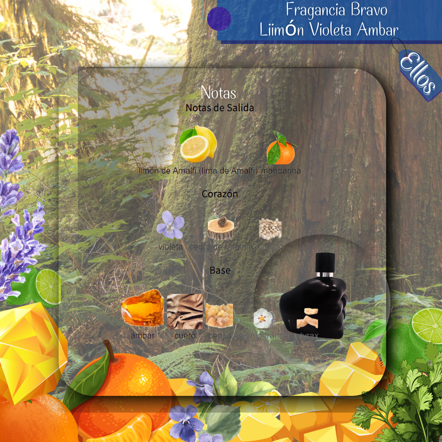 Una fragancia de la familia olfativa Oriental Amaderada para Hombres. Las Notas de Salida son limón de Amalfi (lima de Amalfi) y mandarina; las Notas de Corazón son violeta, cedro de Virginia y cilantro; las Notas de Fondo son ámbar, cuero, benjuí, ládano francés y styrax.