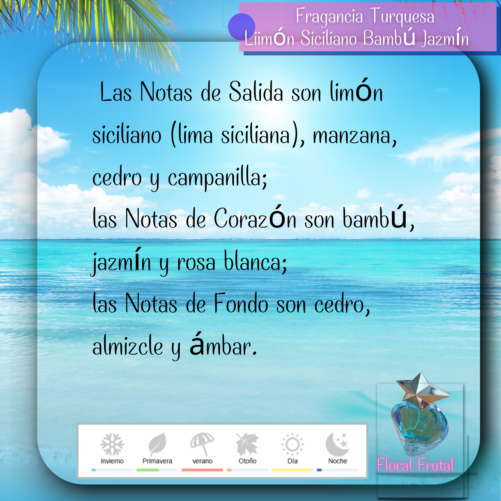 Las Notas de Salida son limón siciliano (lima siciliana), manzana, cedro y campanilla;