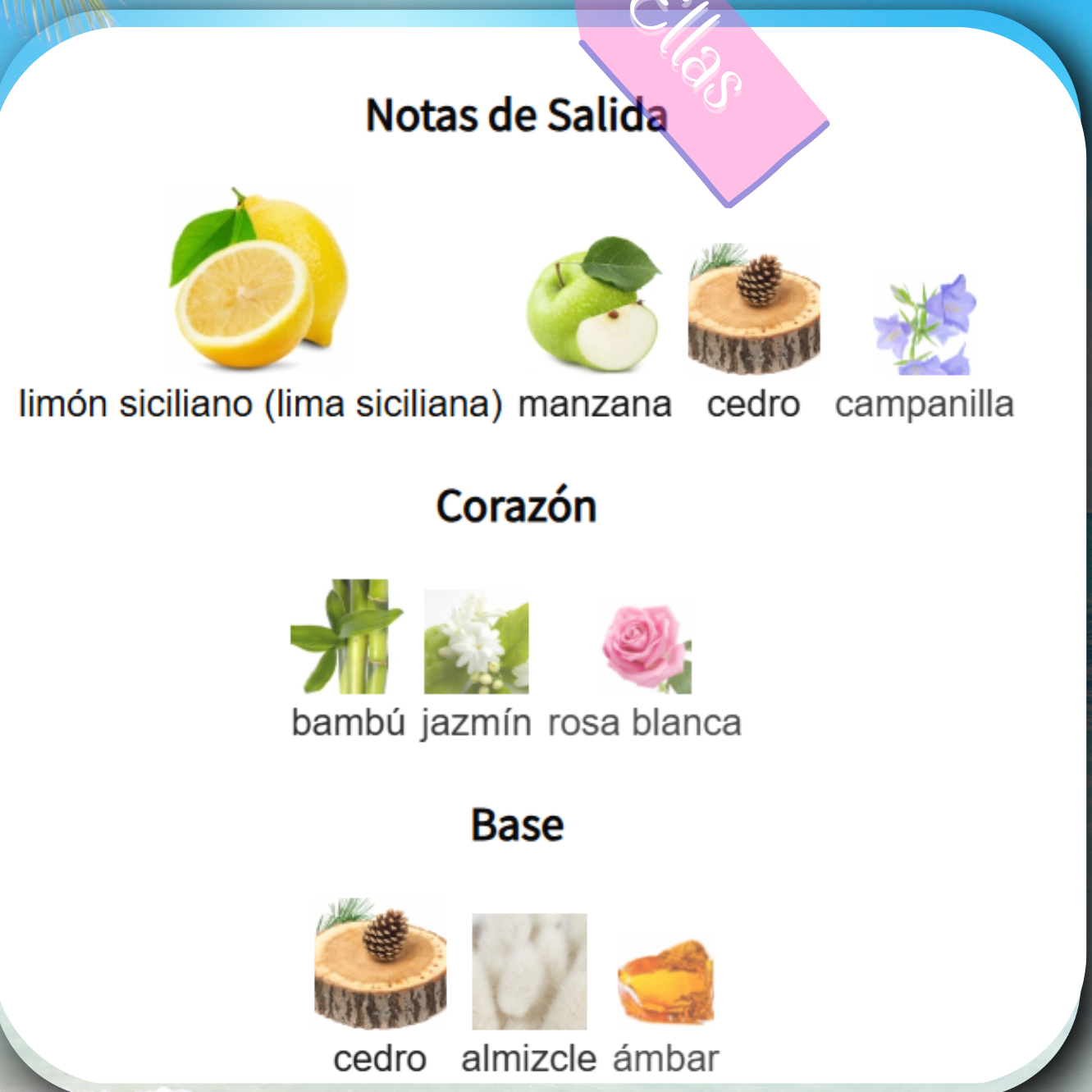 Fragancia que combina frescura, elegancia y versatilidad. Con notas cítricas y florales que enamoran desde la primera aplicación, es un perfume original de larga duración, ideal para mujeres que desean sentirse seguras y radiantes en cualquier momento.