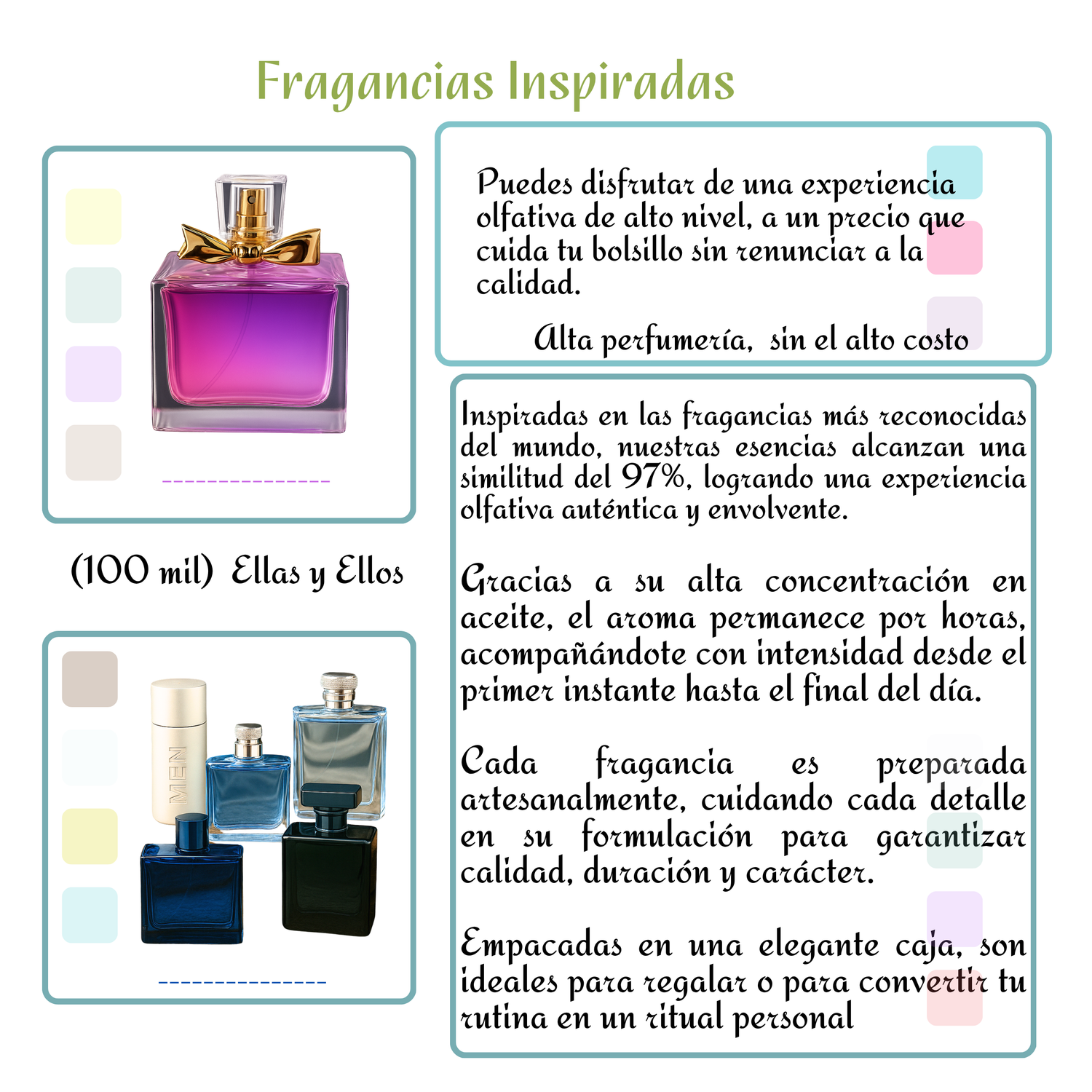 Fragancias inspiradas en las más reconocidas marcas te envuelven con personalidad, elegancia y presencia duradera.