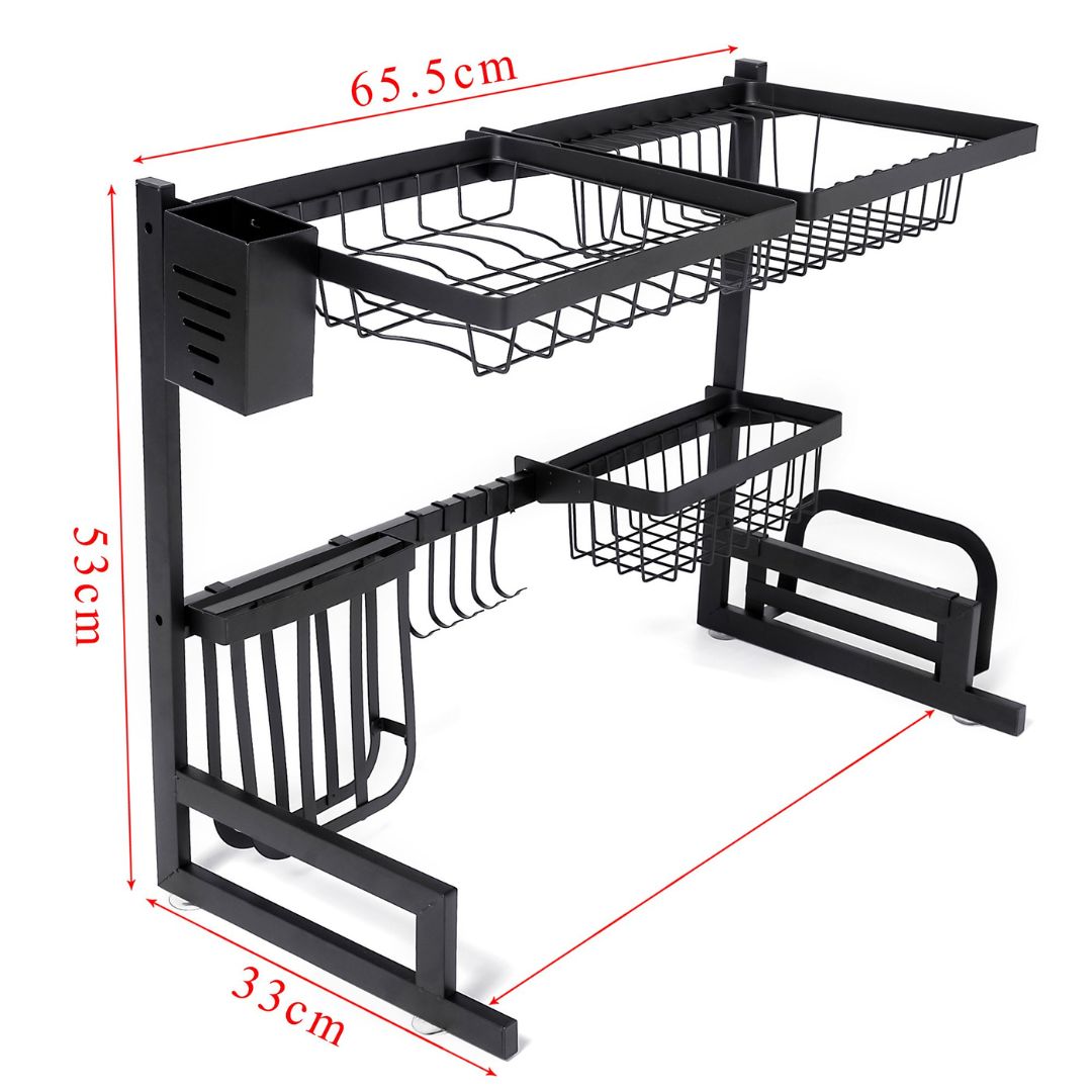 Diseño compacto de 2 niveles: Ideal para ahorrar espacio en tu cocina mientras ofrece suficiente capacidad para secar una variedad de utensilios.