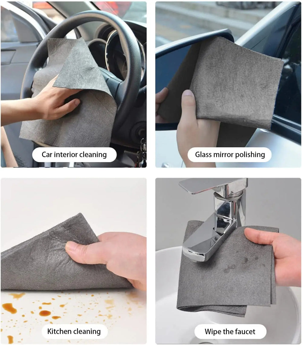 Paños de microfibra ultra absorbentes, reutilizables y libres de pelusa. Limpian eficazmente sin necesidad de detergentes, ideales para ventanas, espejos, cocina, auto y más.